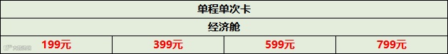 经济舱次卡:199元/399元/599元/799元(此价格均不含机建燃油费用)