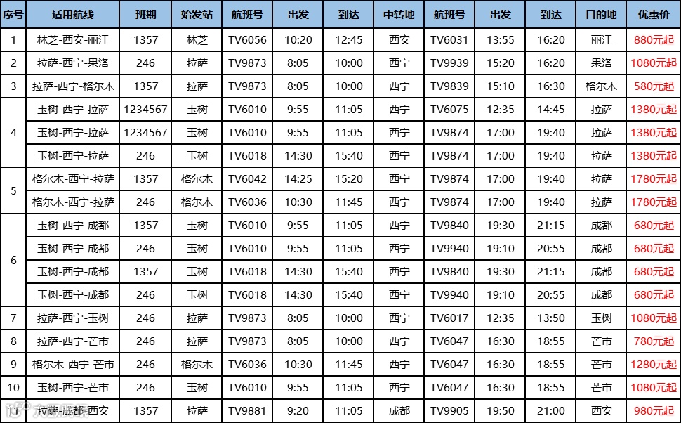 西藏航空早就为各位准备好了