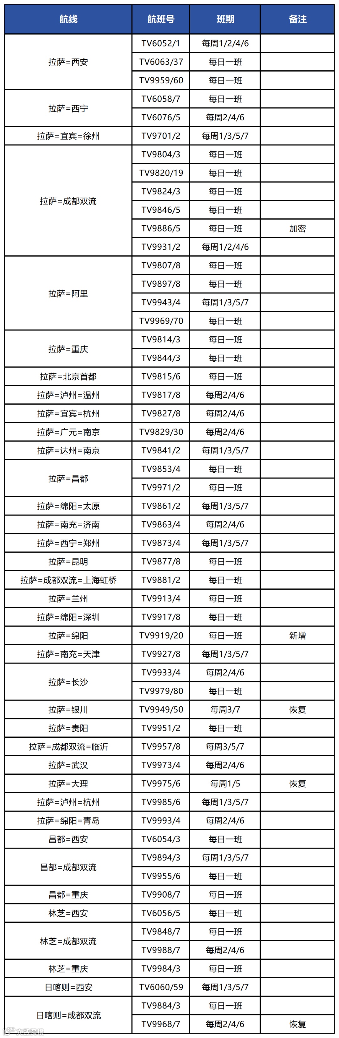为方便您及时了解航班信息,我们针对近期执飞的进出藏航班计划进行梳理,供您参考: