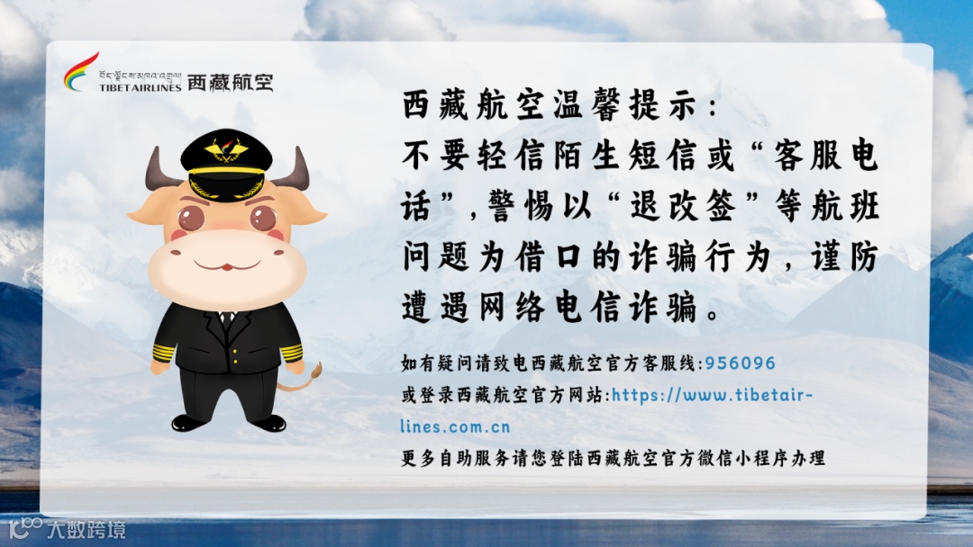 (1)官方渠道核实:航空公司或在线票务服务平台通常只会通过其官方电话联系旅客,如西藏航空官方客服热线956096、携程服务热线95010等。如果是陌生的个人手机号码或“00”“+”开头的境外号码来电,应提高警惕。