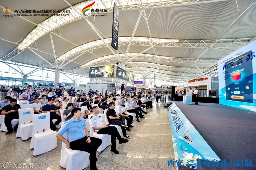 西藏航空在现场举行了航线推介活动,并向复航首班旅客代表赠送精美礼品,共同庆祝西安至苏梅岛航线成功复航。