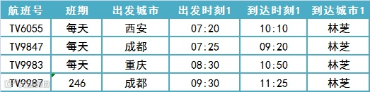 林芝进出港航班时刻
