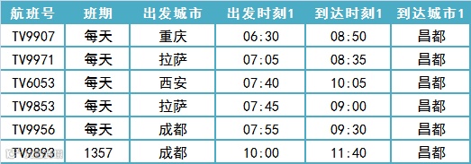 昌都进出港航班时刻