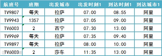 阿里进出港航班时刻