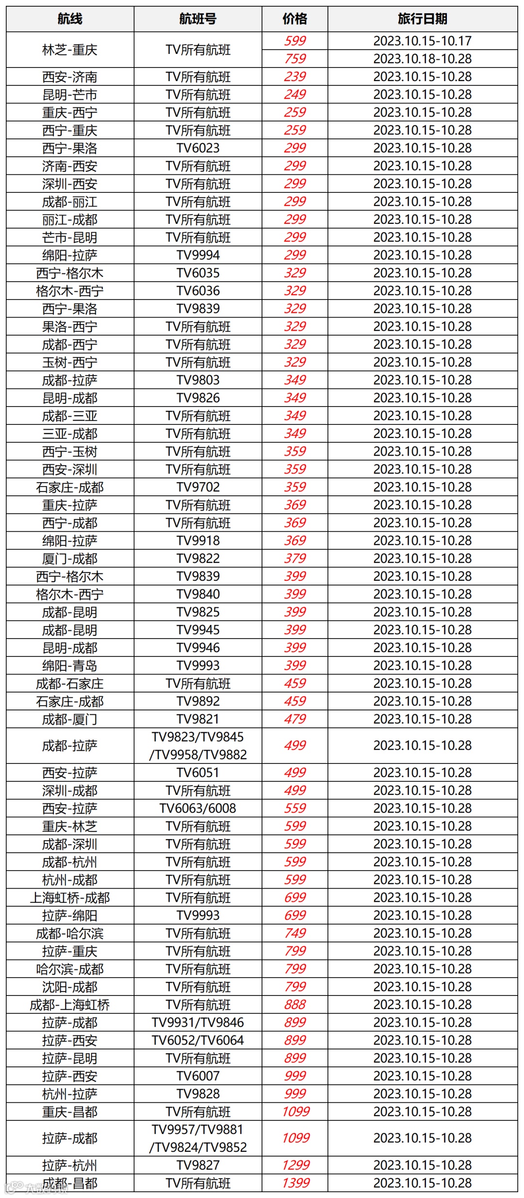 *预付费行李产品价格以藏航销售渠道实际显示为准