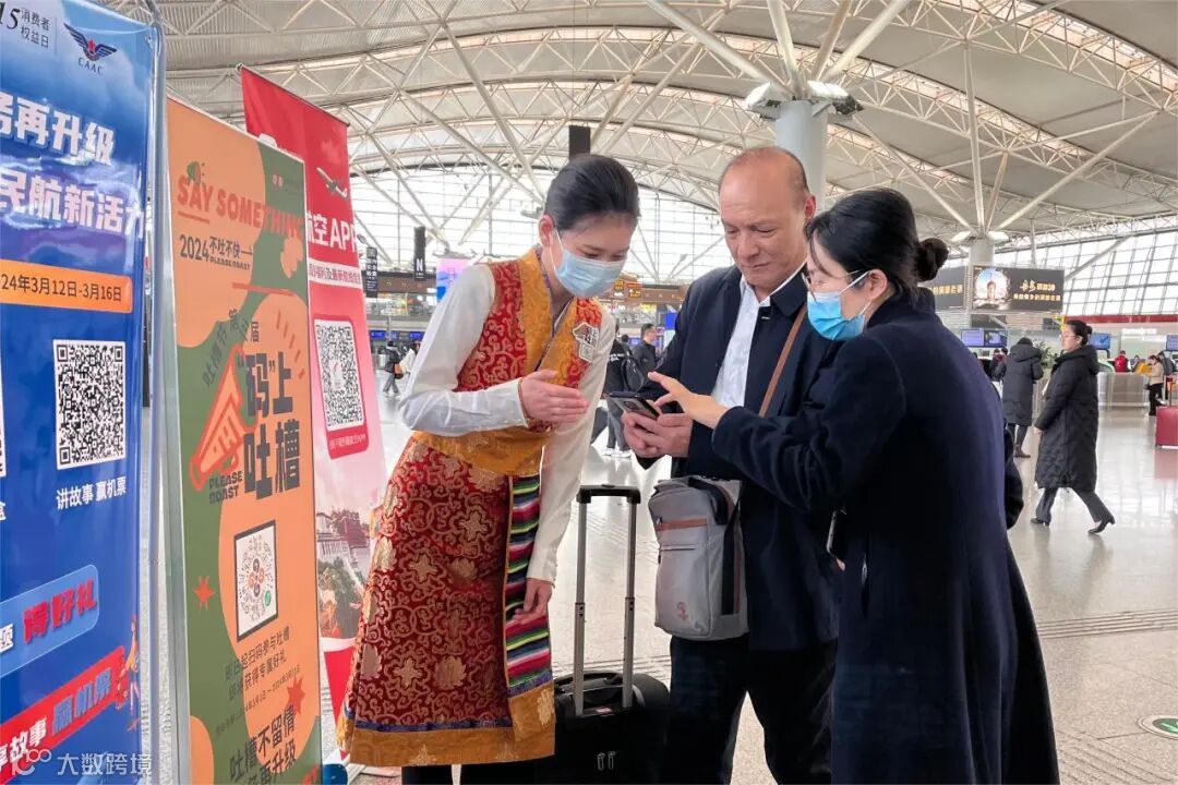 在成都双流国际机场T2航站楼内,西藏航空联合机场设置咨询台,宣传西藏航空最新优惠政策及服务升级新举措,现场解答旅客购票、退改签、航延服务等各项疑问,同时开展有奖竞答活动,吸引了众多旅客观众参与体验。