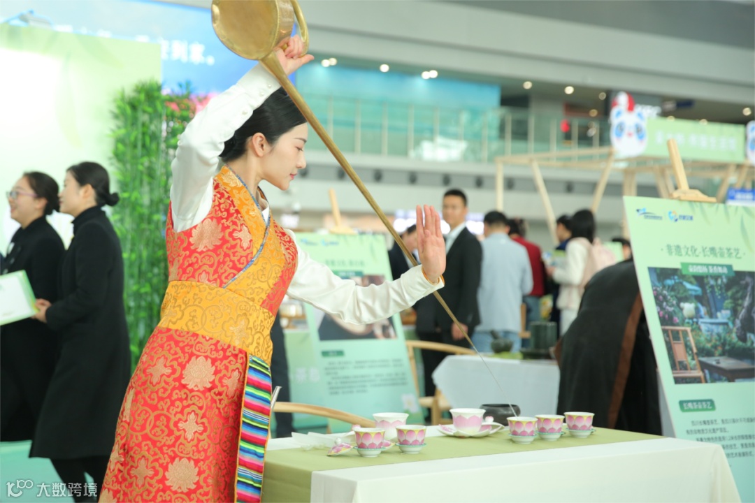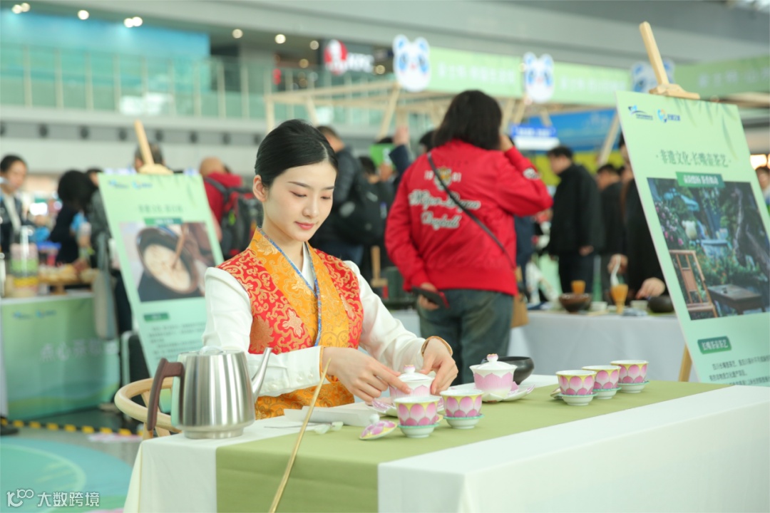 ▲图:乘务员代表受邀为现场旅客来宾表演川茶技艺