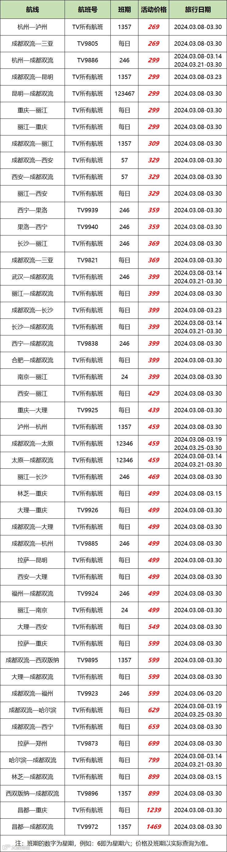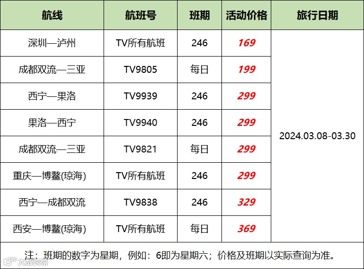 更多特价航线及购买规则