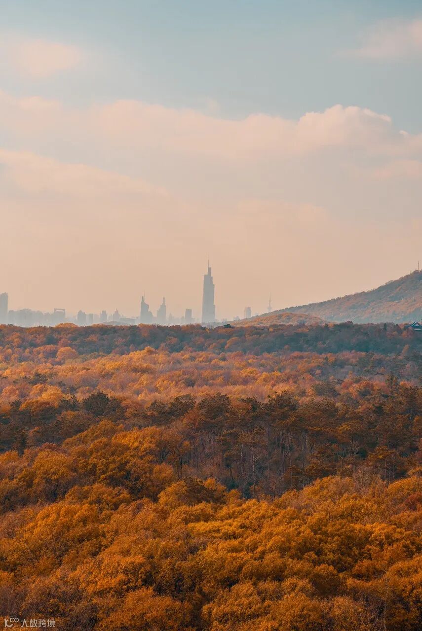 ▲图:远处是南京紫峰大厦,城市已披上了厚厚的秋色