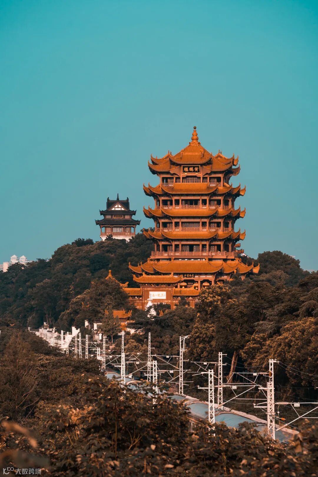 对岸黄鹤楼隔江对峙,相映生辉