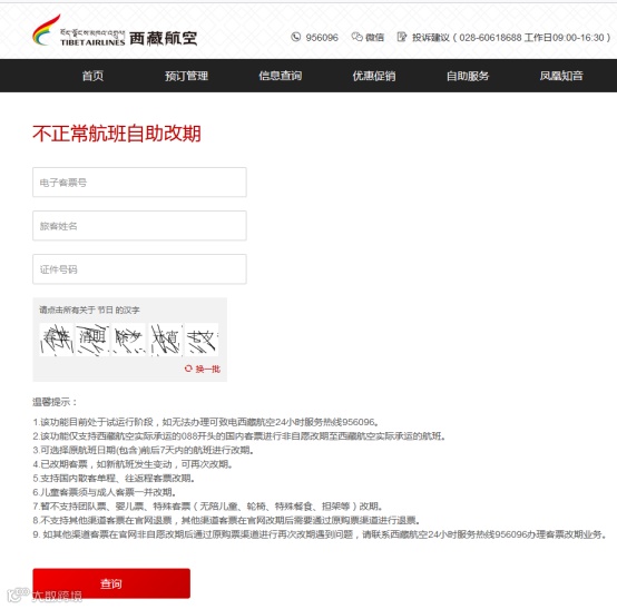 Step1→进入西藏航空小程序/官网-非自愿改期