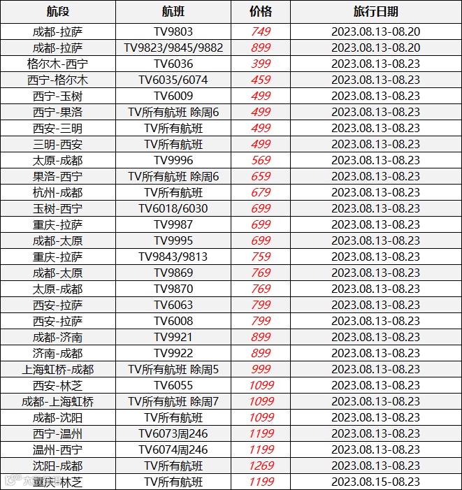 #预付费行李产品价格以藏航销售渠道实际显示为准。
