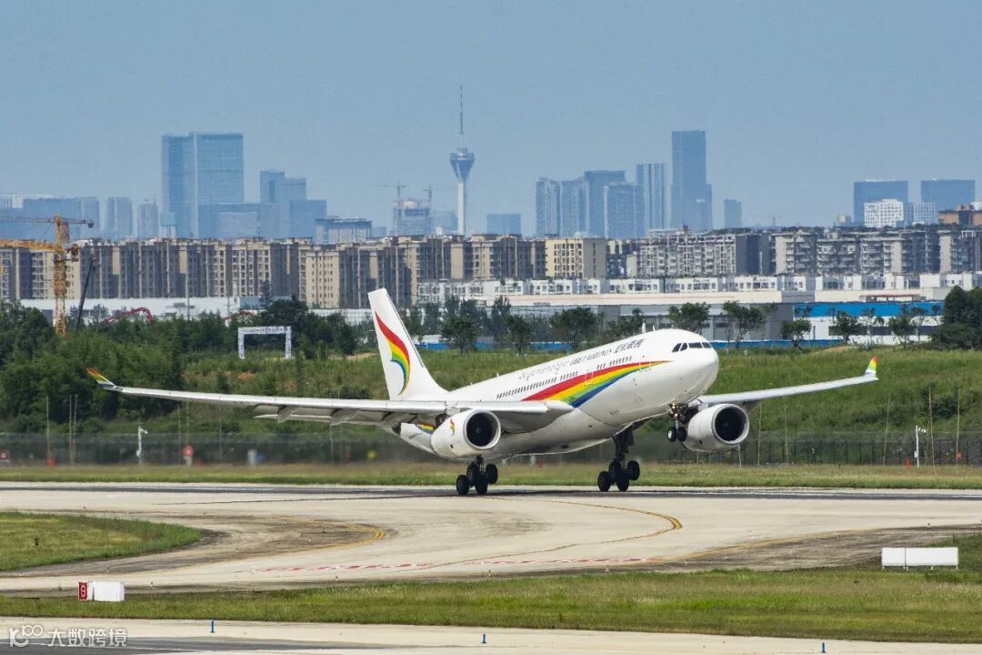 西藏航空A330飞机从成都双流国际机场腾空而起,飞向“日光之城”拉萨