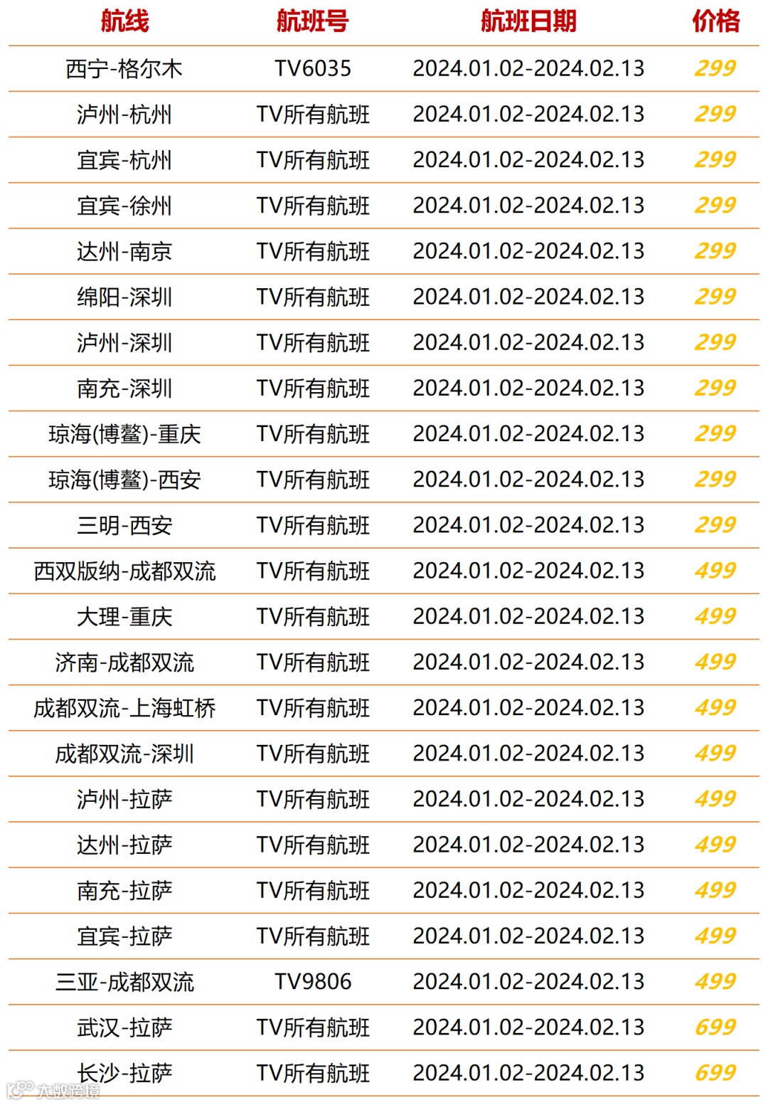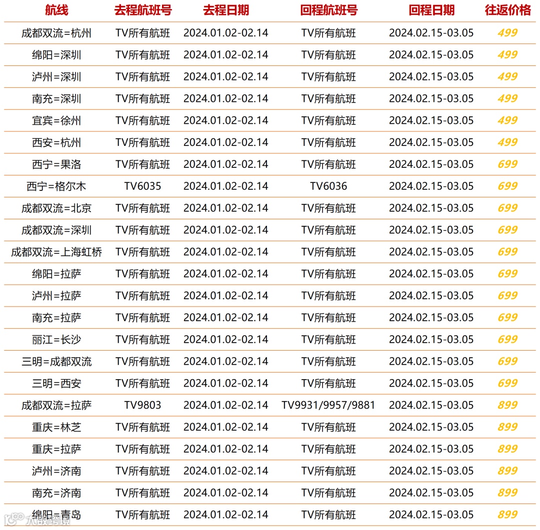 *春运期间航班可能存在变动,请以实际查询为准