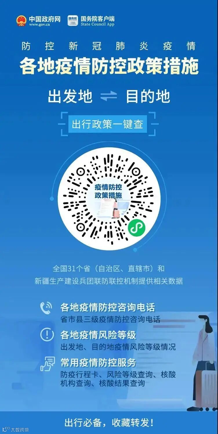 了解各地最新疫情防控政策措施,可扫描下方二维码登录国务院客户端小程序查询。