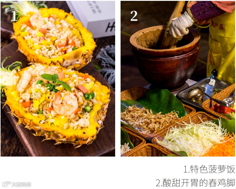 说完了不得不逛的特色景点,西双版纳的美食也绝不能错过,尤其是极具特色的傣味小吃。独具风味傣味手抓饭、用傣族特有烹饪方法制作的包烧、酸甜开胃的舂鸡脚、色香味俱佳的竹筒饭、将罗非鱼裹上香茅草炭烤出炉的香茅草烤鱼、外酥里嫩的傣味烧鸡……这些“版纳味道”一定不能错过!
