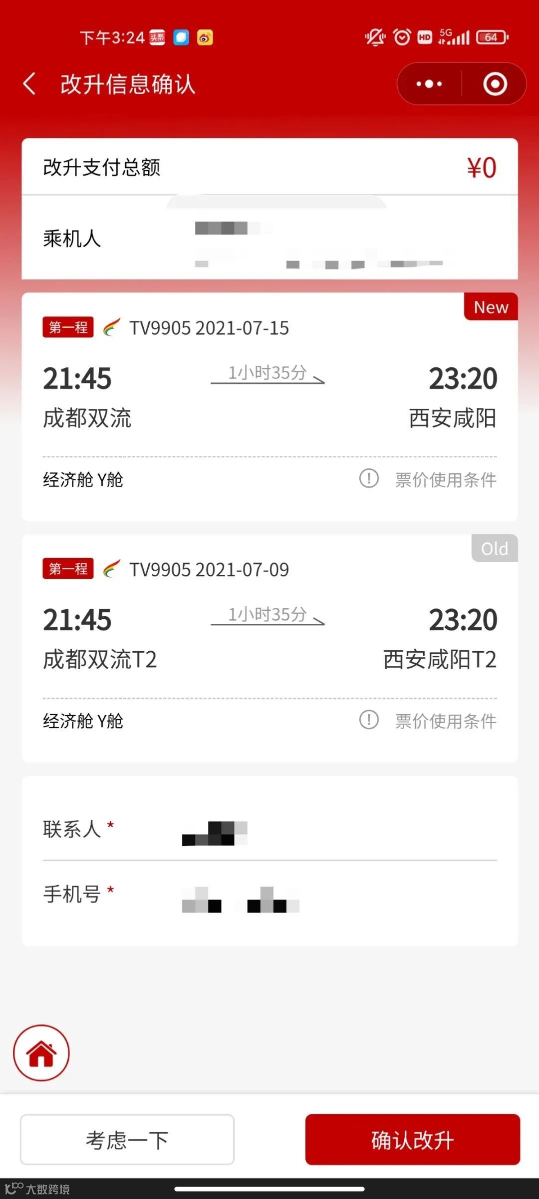 购买西藏航空机票后