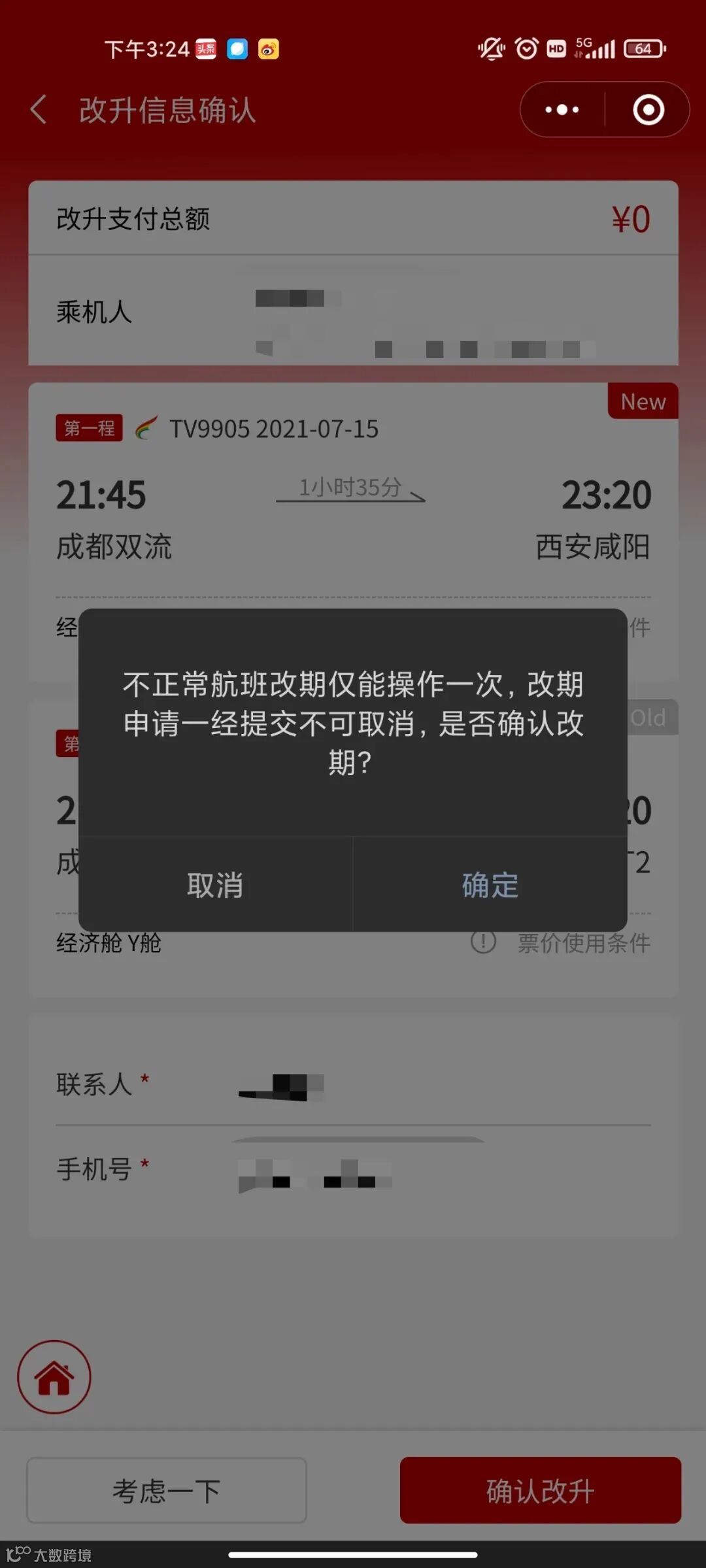 通过西藏航空小程序办理非自愿改期
