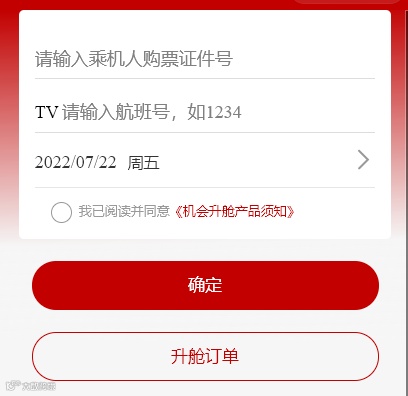 输入需升舱的航班信息,购买机会升舱