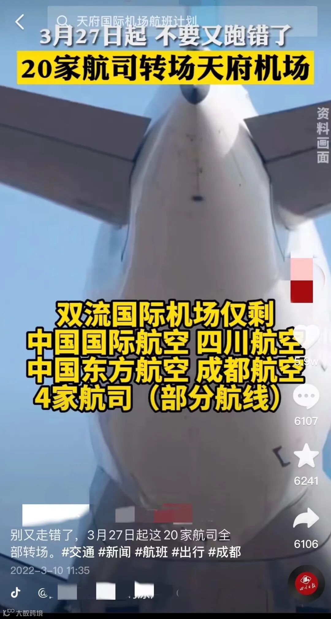 昨天,多家媒体发布了“3月27日,成都天府国际机场将正式进入转场第三航季(2022年3月27日-2022年10月29日),将有20家航空公司全部转场至天府机场运营,届时,在天府机场运营的航空公司数量将增加至32家”的新闻报道。