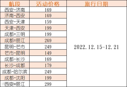更多特价航线及购买规则