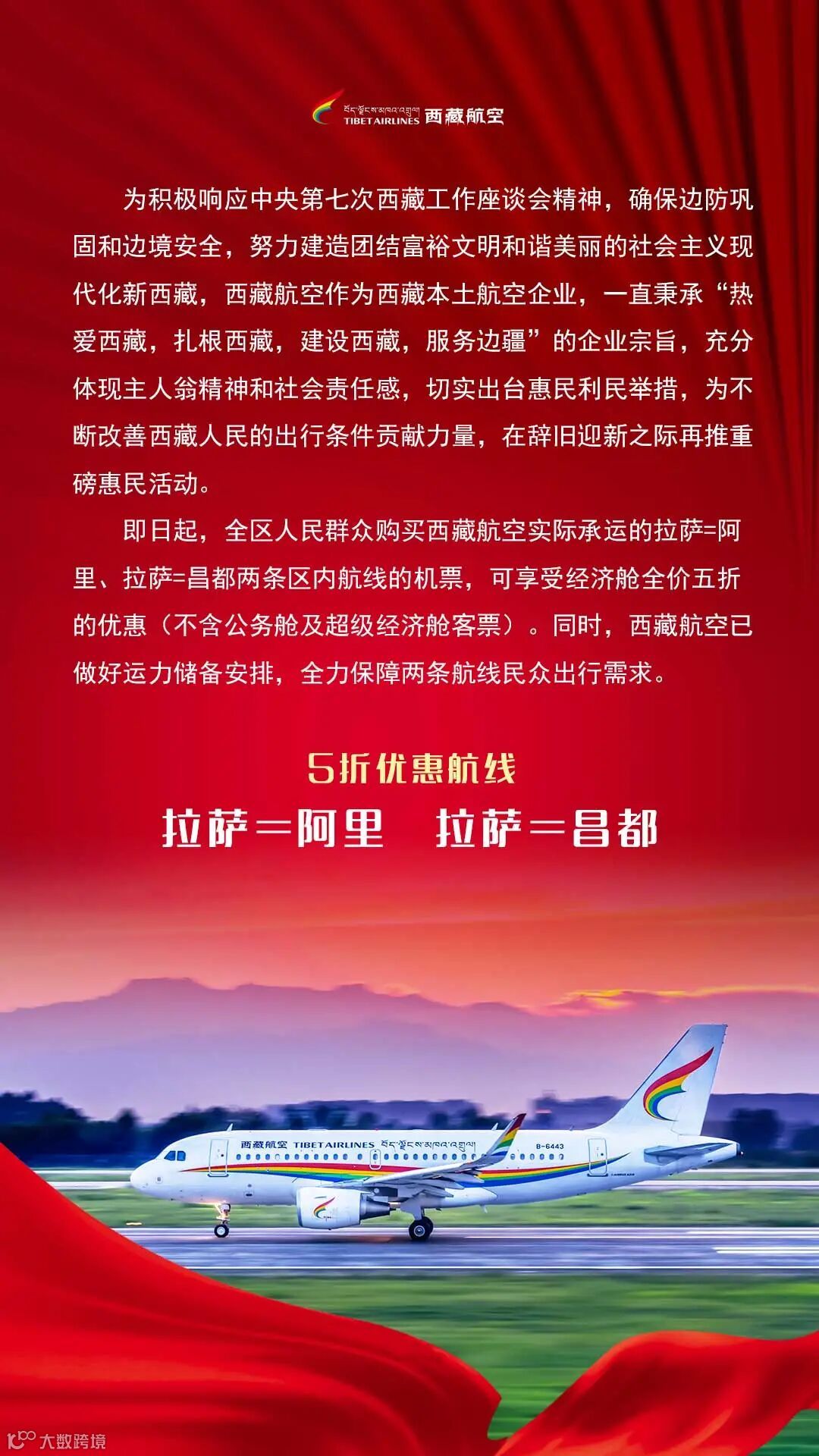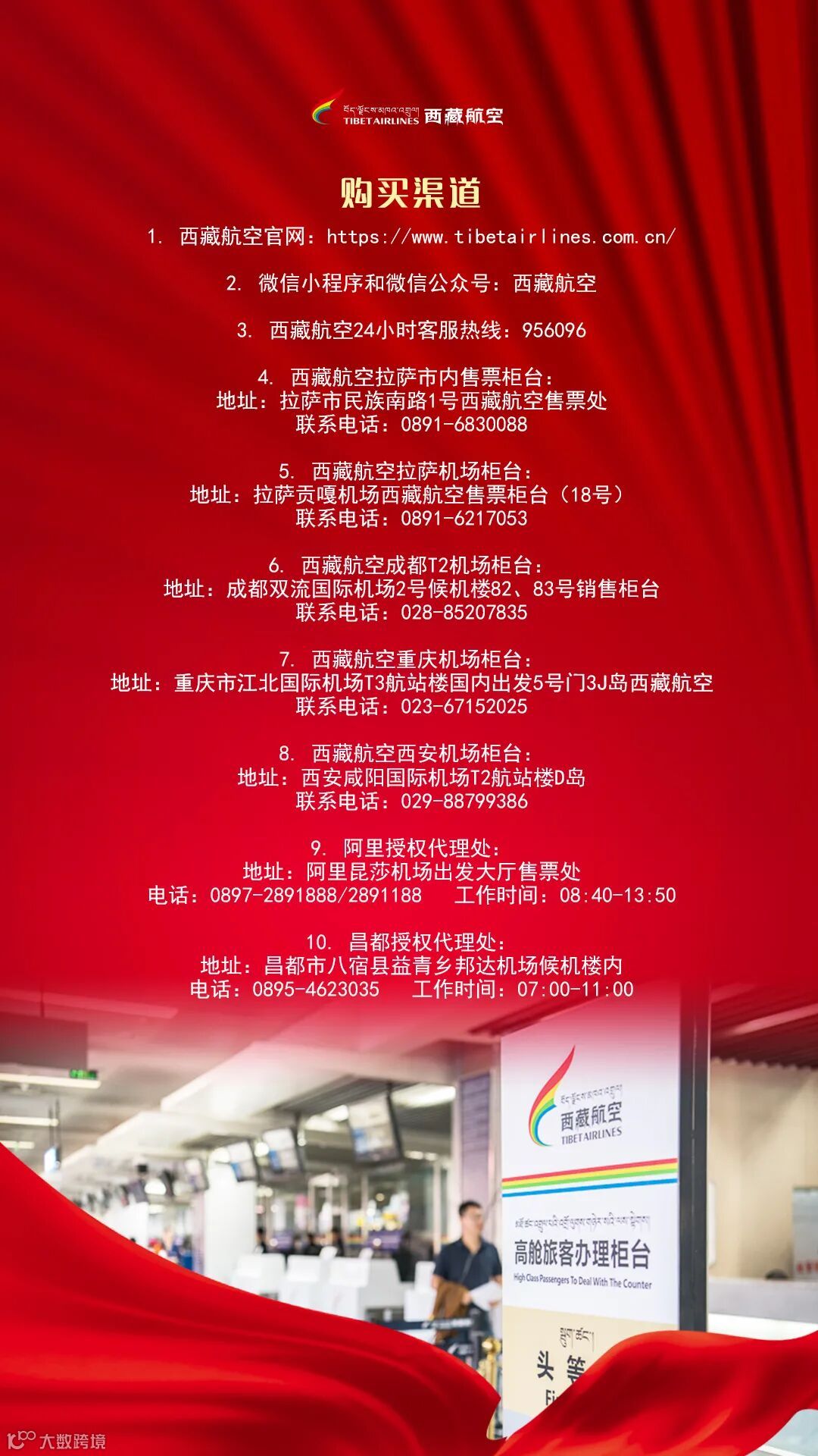 西藏航空官方服务号。为您提供机票预订、选座值机、航班动态查询、出行帮助等贴心服务,发布最新优惠活动、公司新闻、招聘信息、西藏风光美食分享等内容。西藏航空官方网站:www.tibetairlines.com.cn