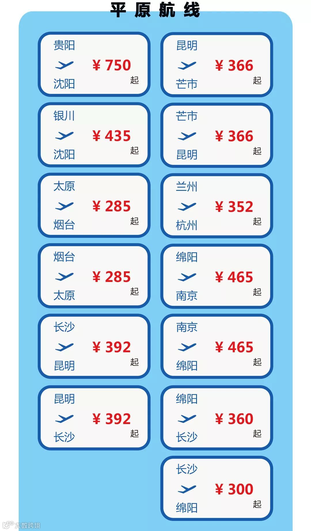 三大地区航线的折扣