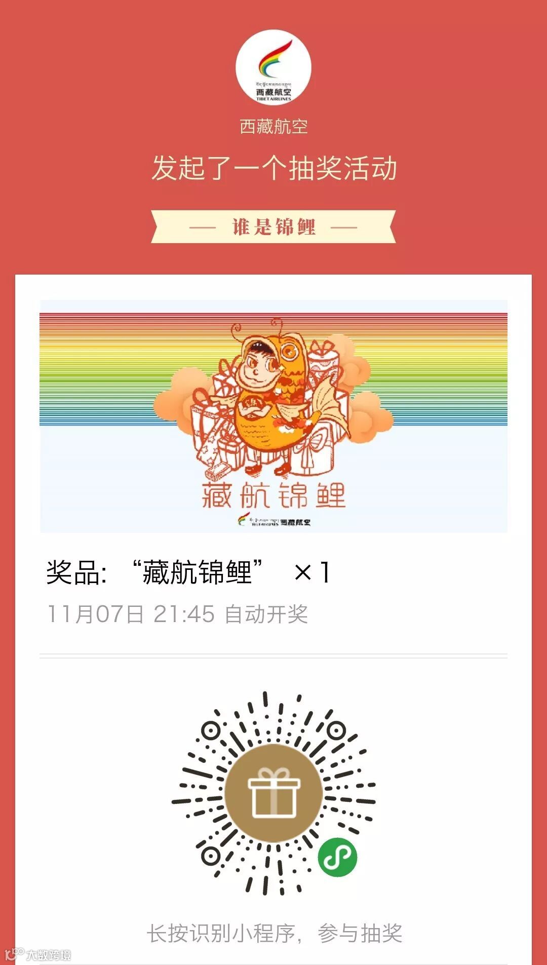 1.活动期间关注西藏航空公众号,在活动推文中扫描二维码参与抽奖