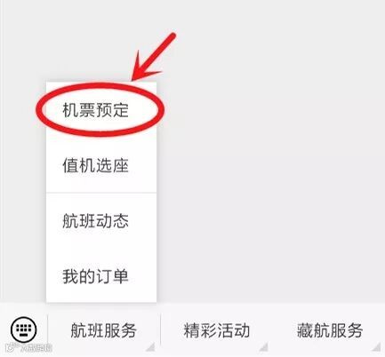 首先选择航班服务,点击机票预定