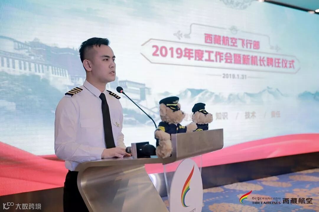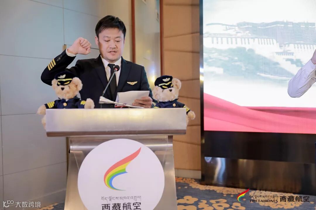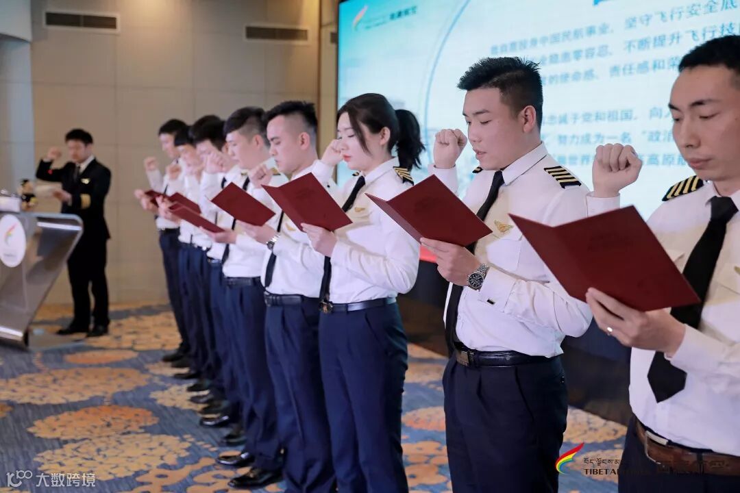 西藏航空飞行部副总经理王刚带领新机长宣誓