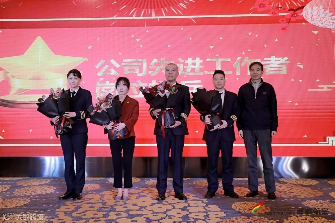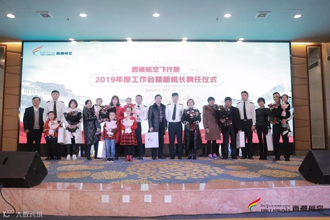 西藏航空党委书记冉仕平为新机长家属送上鲜花和机模