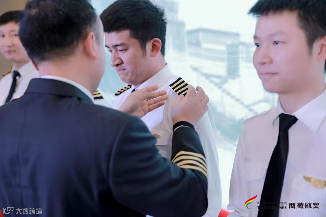 西藏航空副总飞行师钟敏为新机长佩戴肩章