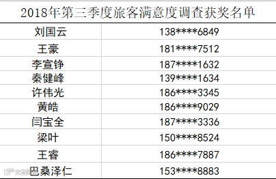 2018年第三季度旅客满意度调查已经圆满完成啦