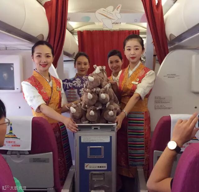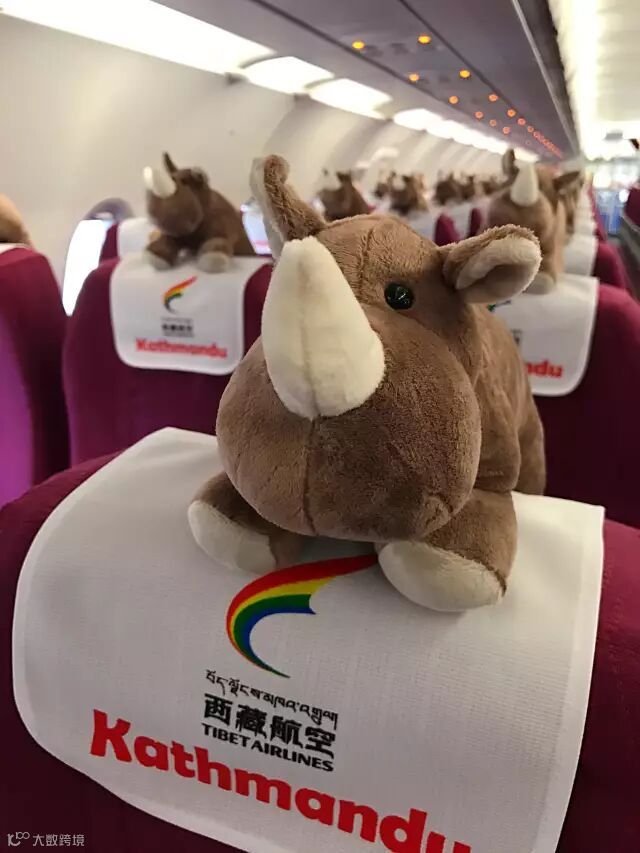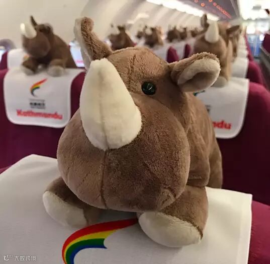 每个座位上都为旅客准备了一只尼泊尔国宝“独角犀”