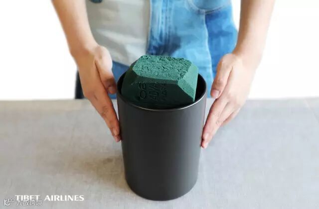 将浸泡好的花泥放入瓶中,高出瓶口1-2cm