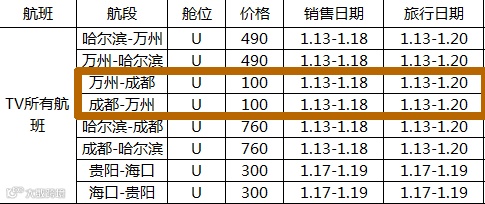 哈尔滨12:30=16:20万州
