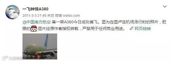 后来,基于对飞机乃至航空业的热爱,Kevin关注发布的信息不再局限于A380,逐渐涉猎到了各个飞机制造商的各种热门机型。他微博上的粉丝越来越多,甚至吸引了空客中国高层的关注,他也成了当时名副其实的航空自媒体大V。