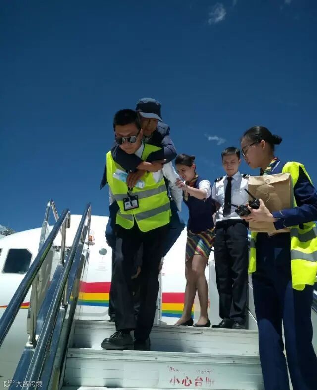 一线员工一同帮助行动不便的旅客登机