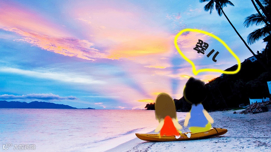 就是和小翠你,漫步在幼白的沙滩上,