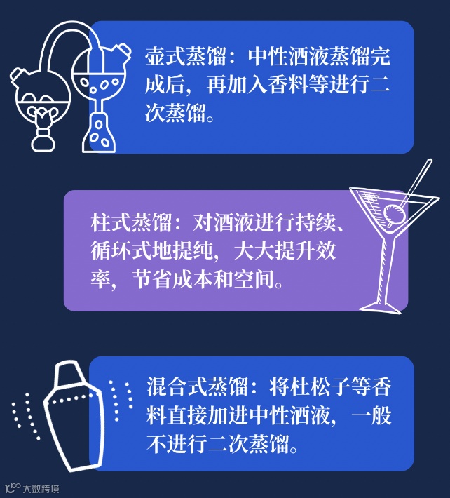 壶式蒸馏、柱式蒸馏、混合式蒸馏