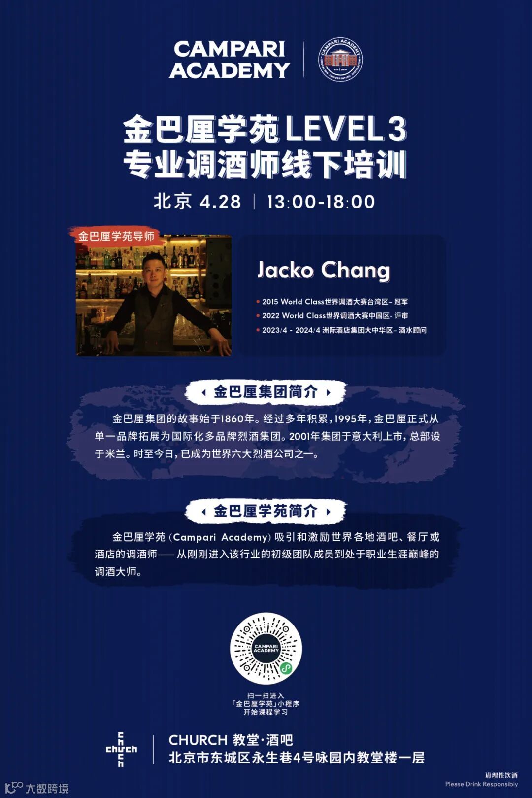 金巴厘学苑Level 3专业调酒师线下培训说明