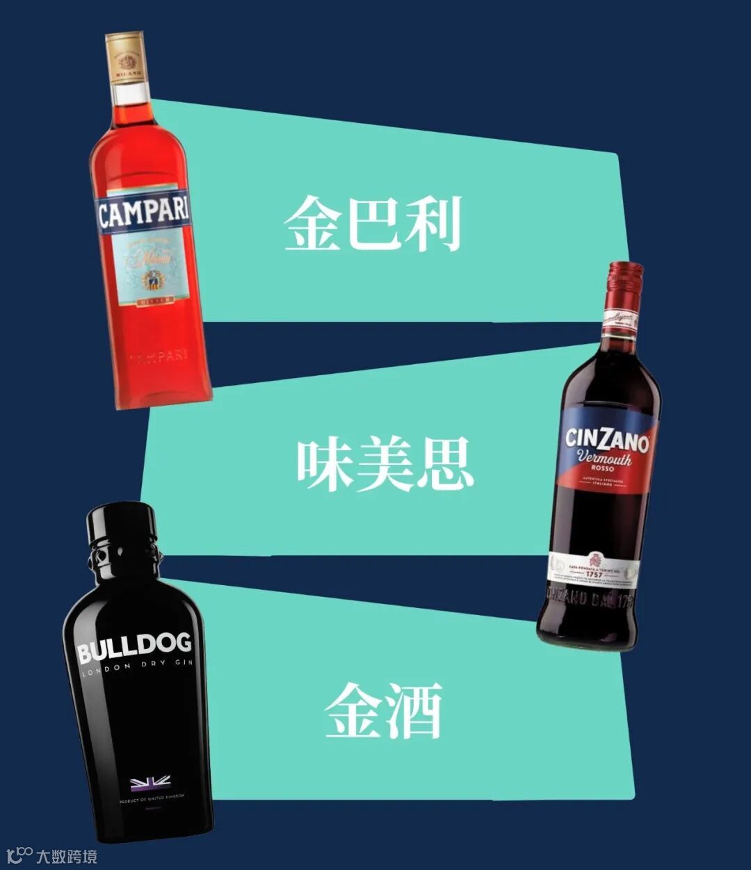 1. 准备金巴利苦味利口酒、仙山露红味美思和搏斗犬金酒