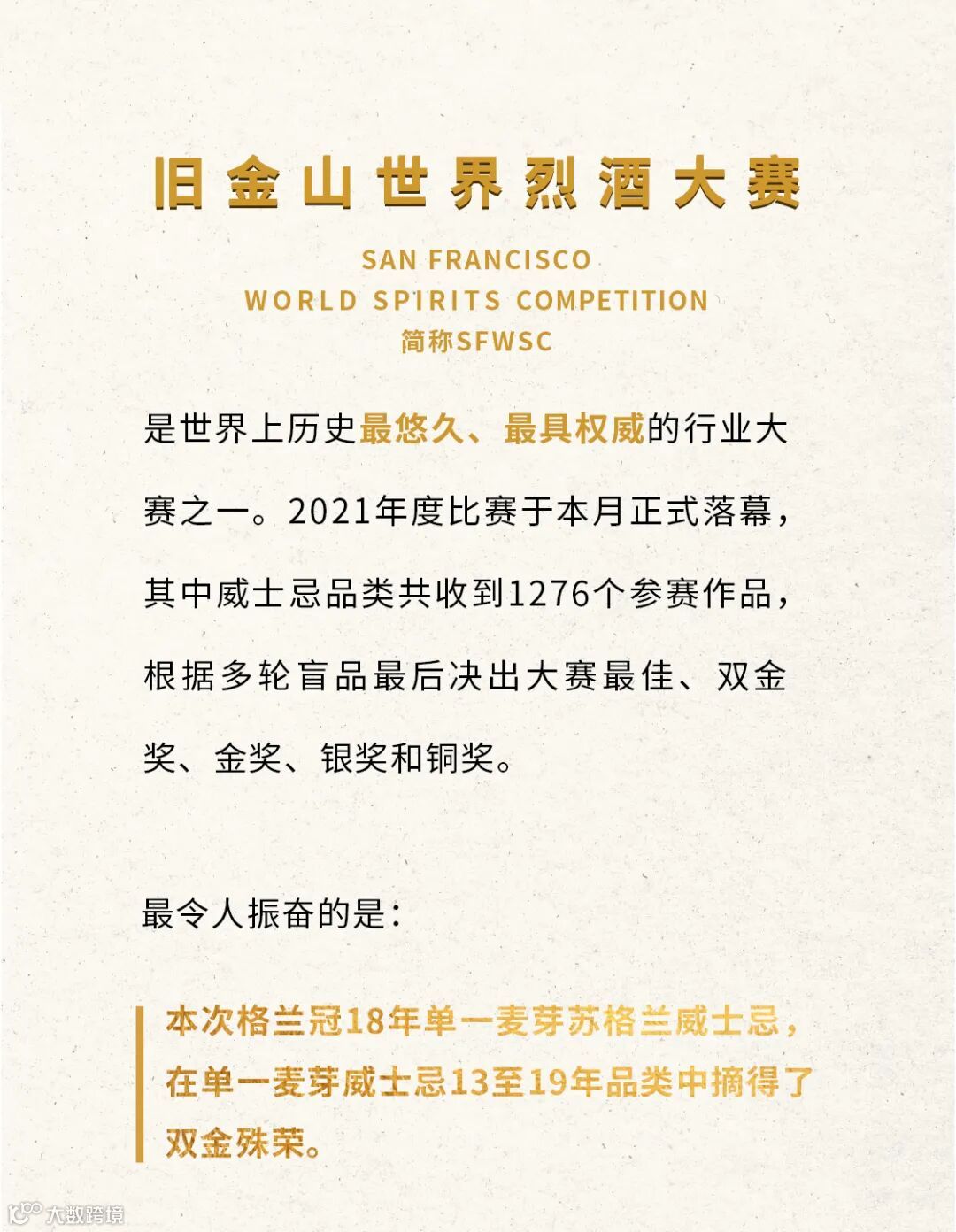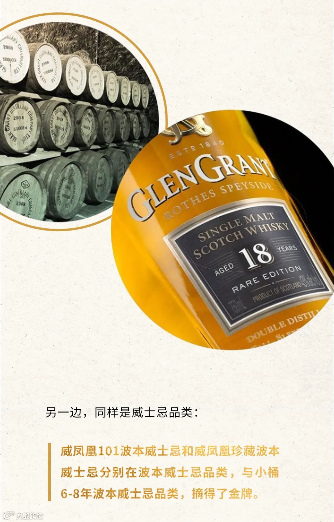 导读:格兰冠单一麦芽威士忌18年双金,威凤凰101波本威士忌和威凤凰珍藏波本威士忌各得一金。