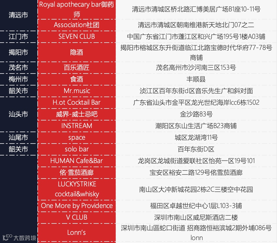 截止至9月20日,全国共计107座城市420家酒吧加入到了内格罗尼周的行列之中,这场全球性的大型内格罗尼盛会,不仅是一场关于美酒的狂欢,同时也是一场延续热爱的公益之举,每一家参与的酒吧都将以各种形式展现以爱之名,献出自己的一份力量,助力行业重振旗鼓。如果你也热爱内格罗尼和鸡尾酒,不妨一起举杯,加入到这个意义不凡的时刻吧!