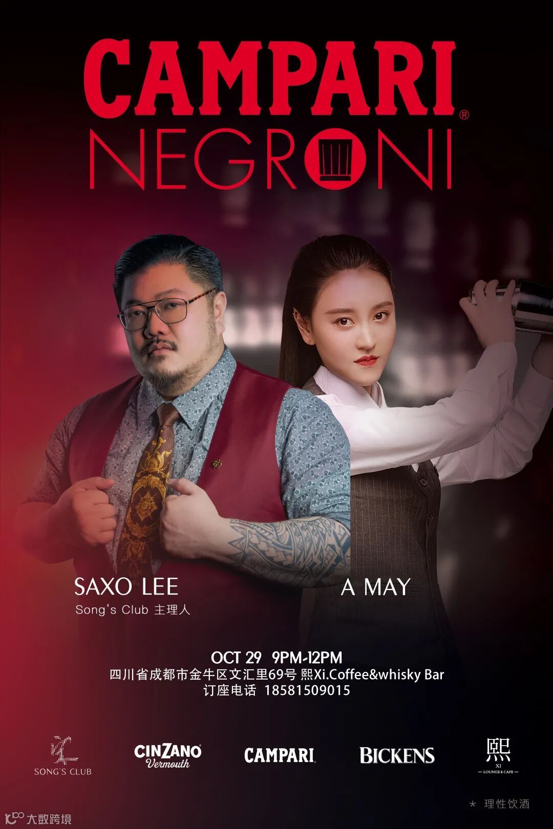 10月21号,来自成都的Dino Lee和Eric Pan前往广州的Song's Club客座,和众多鸡尾酒爱好者互动,带领大家一起品鉴内格罗尼,讲述这杯鸡尾酒的传奇故事。