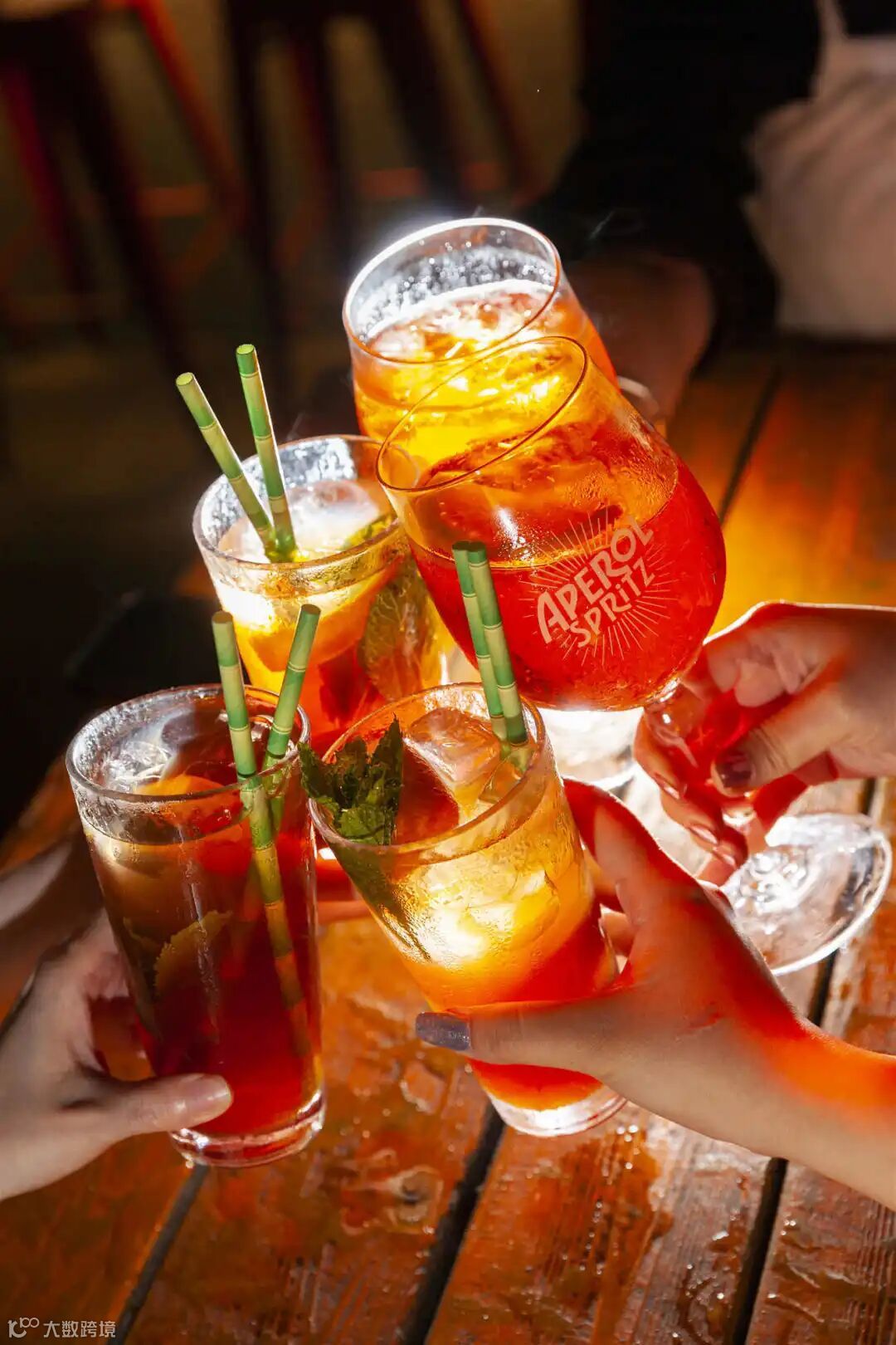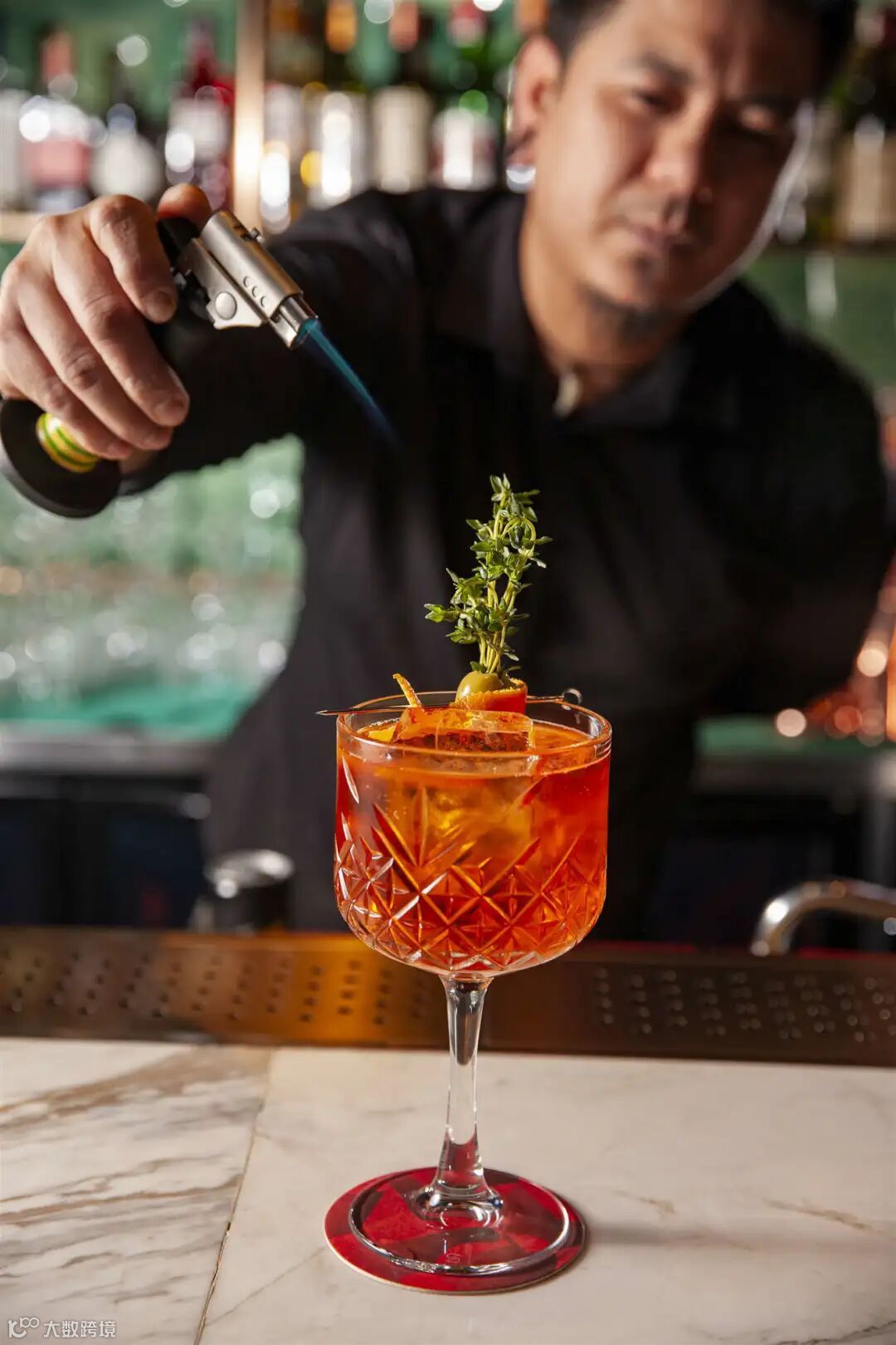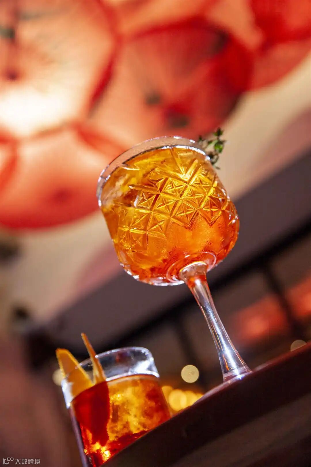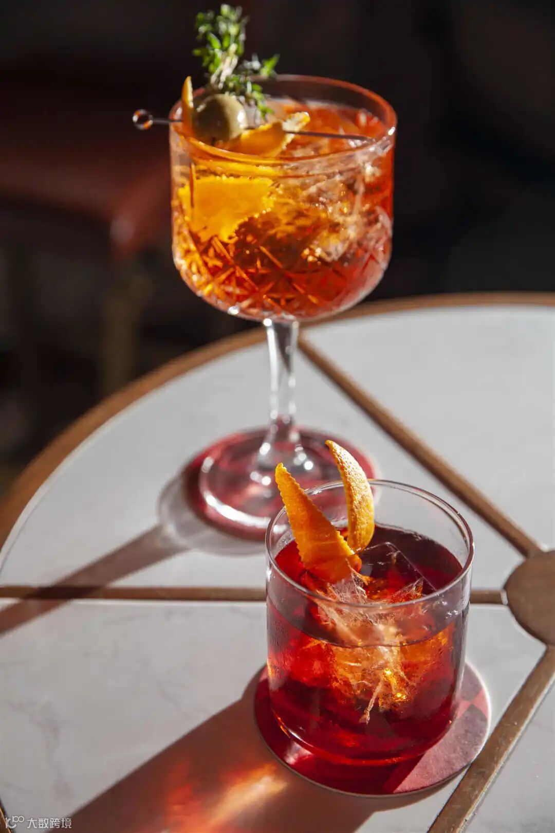 Senator Saloon也有自己独特的Aperol Spritz。在橄榄与草本香的加持下,使得这杯橙光起泡酒,多了一丝沉淀和醇厚的味道。渐变的橘红色酒体,也正好和店内纸醉金迷的气息相配,让人不得不感慨,还真是没有哪款酒能比Aperol Spritz,更像一道阳光般点亮你的酒桌!