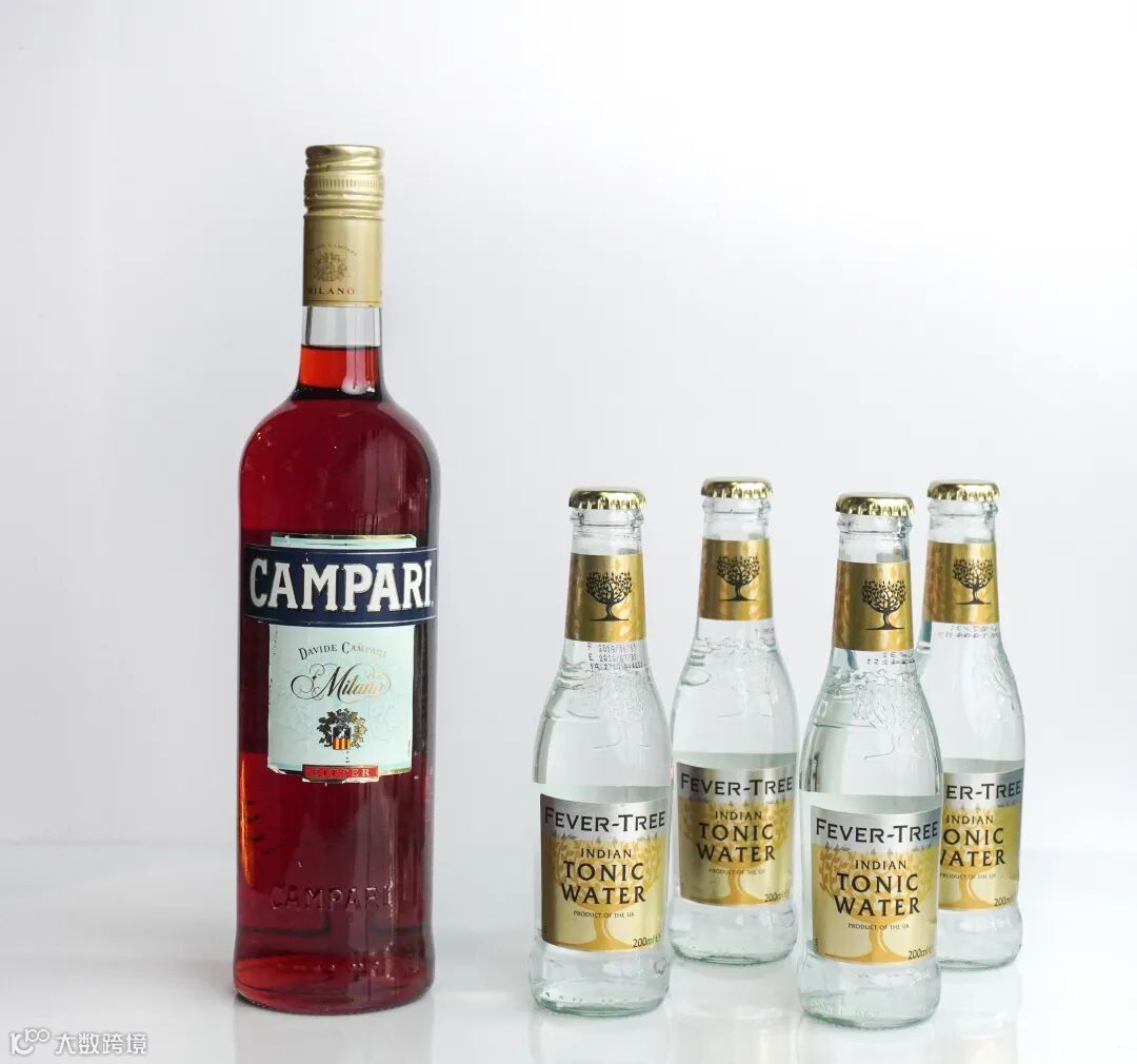 倒入一份金巴利,三分汤力水