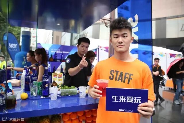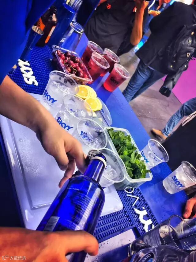 更好玩的是,现场设立了SKYY Booth,嘉宾找到它就能享用深蓝伏特加免费试饮,还能和帅气的调酒师互动。