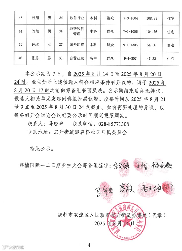业主如对候选人资格存疑,可于公示期内向筹备组书面反馈(详见文件正文)。