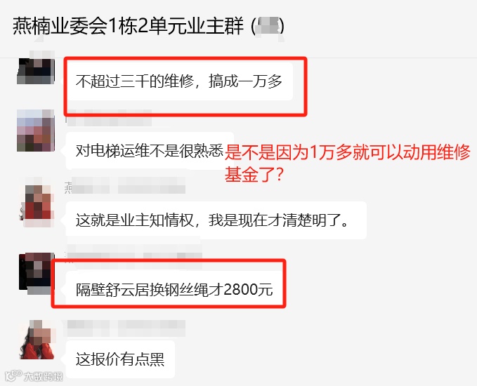 划重点!日常维护(如常规检查、小故障修复)属于物业包干范围,不能随便动用维修基金! 只有电梯出现 “危及安全的重大故障”,且符合维修基金使用条件(比如业主表决通过),才能启用。 遇到物业借口 “修电梯” 动维修基金,先问清楚:是日常维护还是大修?有没有公示方案和费用? 前面1栋2单元更换“天价”钢丝绳,大家自行脑补 结果电梯还频繁出现问题
